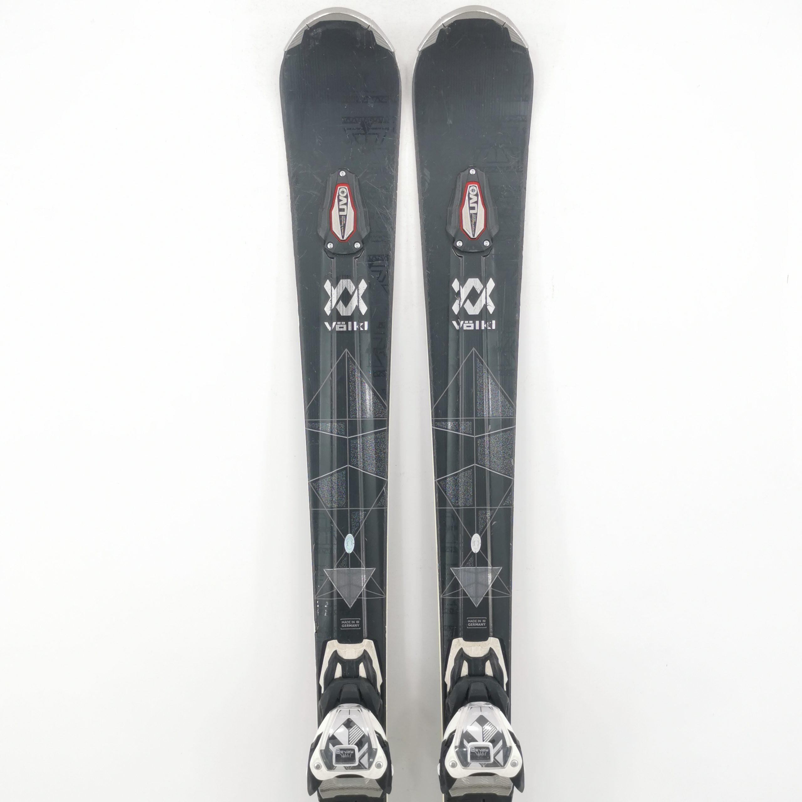Stare generala foarte buna. Putine urme de utilizare pe partea superioara. Talpa si canturile sunt in stare foarte buna, fara zgarieturi sau lovituri. Complet servisate, pregatite pentru sezon.